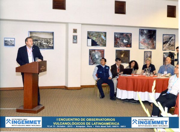 El I Encuentro de Observatorios Volcanológicos de Latinoamérica se realizó entre el 12 y 13 de octubre del 2015, en la ciudad de Arequipa, Perú. Fue organizado en conjunto con el Instituto Geológico, Minero y Metalúrgico del Perú (INGEMMET) y su observatorio volcanológico (OVI). Contó con 46 participantes de 21 instituciones pertenecientes a 10 países. Los objetivos del evento estuvieron centrados en compartir los avances e innovaciones de los últimos años en las instituciones, intercambiar experiencias en manejo de crisis y discutir las dificultades, retos y limitaciones que los observatorios enfrentan.